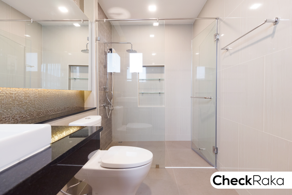 ติดตั้งฝักบัวแบบ Rain Shower และเจาะช่องสำหรับวางของในห้องน้ำให้ด้วย