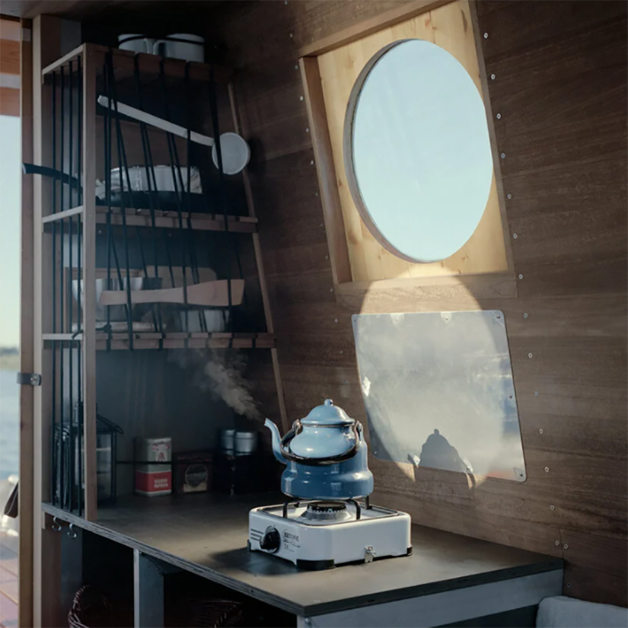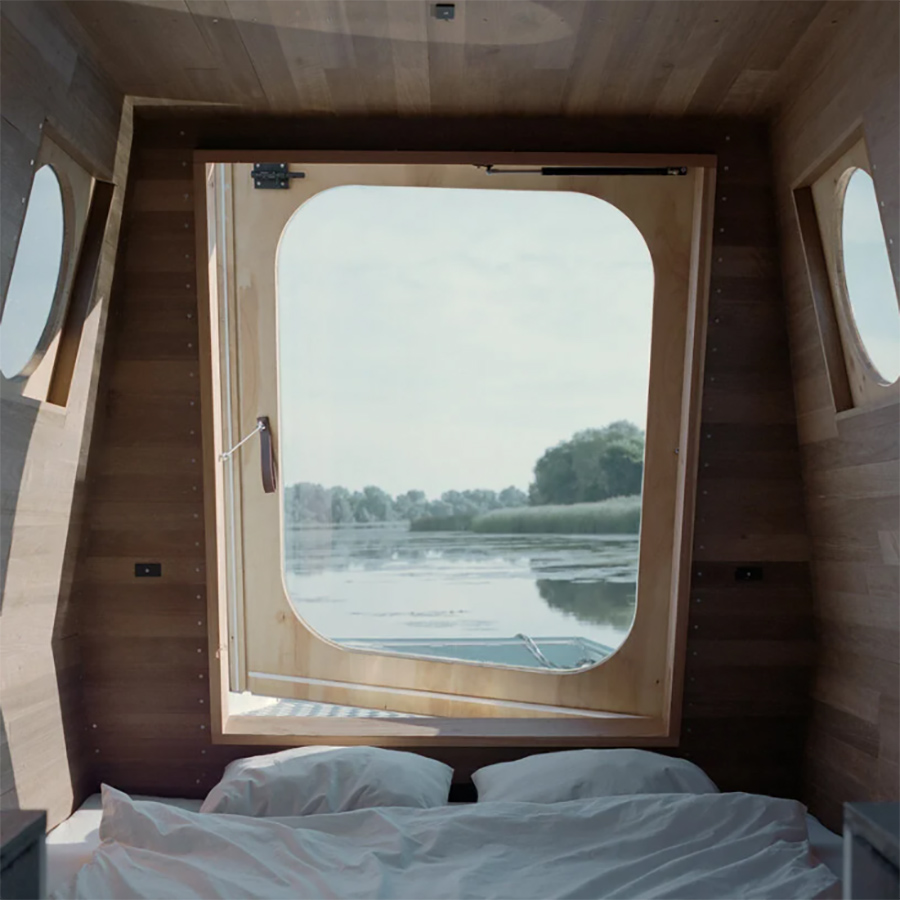 เรือลำนี้นั้นได้ออกแบบจากการบรีฟของหนุ่มสาวที่อยู่ในเมืองบูดาเปสต์ ประเทศฮังการี มองๆ ดูแล้วการล่องเรือนี้ไม่ได้แค่หารัก (ร้องเพลงล่องเรือหารัก) แต่เป็นการหาทำแบบสุดๆ ความต้องการก็คืออยากพักร้อนแบบใกล้ชิดกับธรรมชาติ โดยผู้ออกแบบพยายามที่จะกลมกลืนกับสภาพแวดล้อม จึงใช้ใช้โครงสร้างเรือาเรือประมงแบบเคบินดั้งเดิมที่อยู่ในท้องถิ่น ซึ่งเจ้าเรือนี้ก็มีขนาดที่พอดีๆ ในการจัดสรรทำเป็นห้องครัวขนาดเล็ก มีโต๊ะรับประทานอาหาร และพื้นที่สำหรับนอน มีหน้าต่างทรงกลมเพื่อให้ชมทิวทัศน์ 2 ข้างทางทะเลสาบทิสซา ประเทศฮังการี ส่วนสีของเรือนั้นก็ใช้สีธรรมชาติที่ออกแนวอบอุ่น จึงเป็น 1 เดียวกับธรรมชาติตามคอนเซปต์ที่วางไว้ตั้งแต่แรก