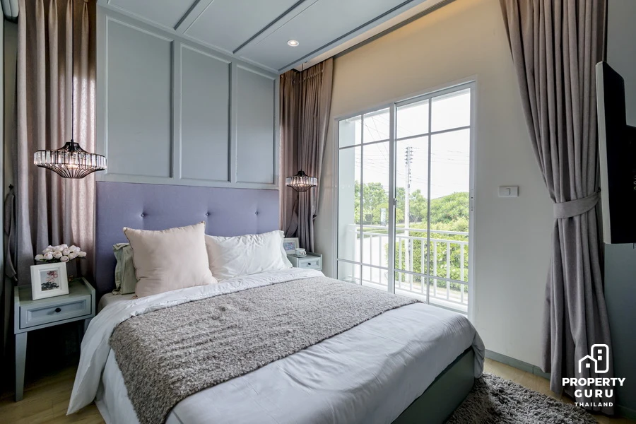 มาดูกันที่ Master Bedroom ยังคงคอนเซ็ปต์ความเป็นสไตล์ American Cottage โทนสีพาสเทลแบบอบอุ่นนุ่มลึก