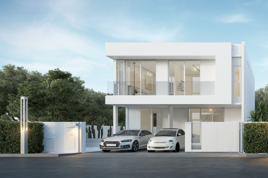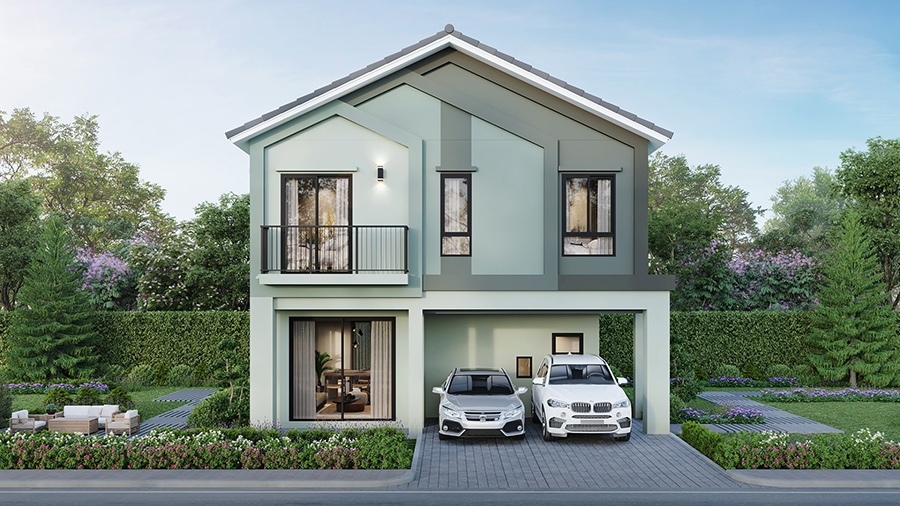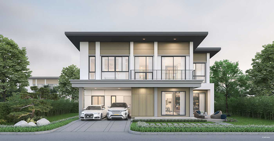 - แบบที่สองบ้านเดี่ยว สวนส่วนตัวกลางบ้าน : พื้นที่ใช้สอยขนาด 229 ตร.ม. 2 ห้องนอนขนาดใหญ่ มาพร้อม 3 ที่จอดรถ (เพดานสูงพิเศษ Double Volume)