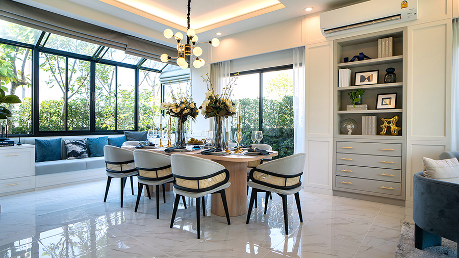 - MARIE ขนาดพื้นที่ใช้สอย 210 ตร.ม. 4 ห้องนอน 4 ห้องน้ำ 2 ห้องนั่งเล่น 1 ห้องอเนกประสงค์ และ2 ที่จอดรถ (ในร่ม)