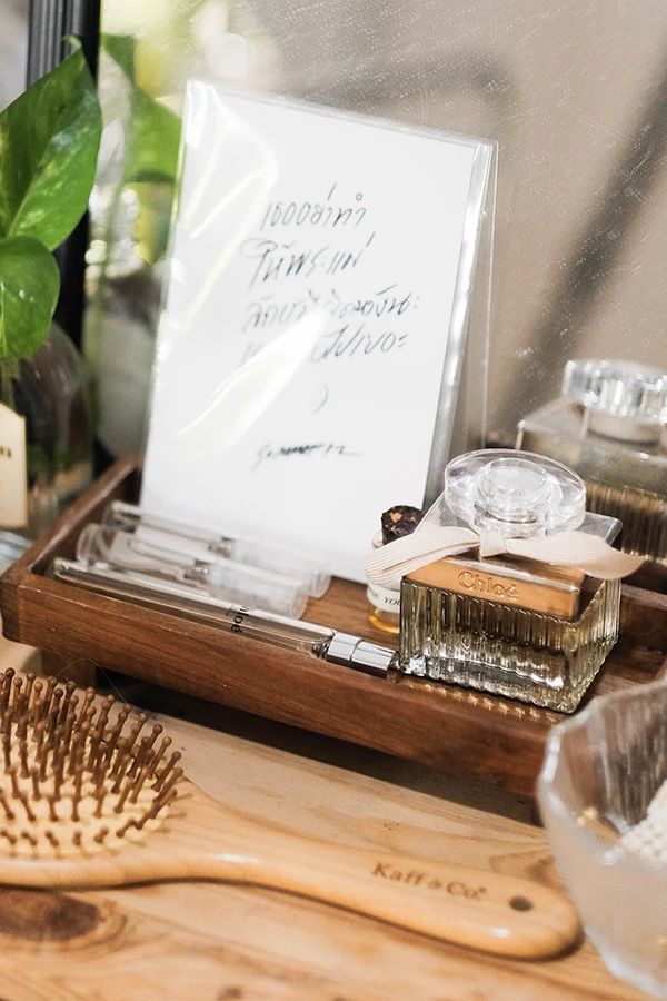 ถาดวางของที่ทำจากไม้สัก ช่วยเพิ่มความคลาสสิคและวินเทจให้กับโต๊ะเครื่องแป้ง เหมาะกับวางน้ำหอม เครื่องสำอางหรือสกินแคร์ที่มีแพคเกจจิ้งสวยๆ ไว้สำหรับโชว์บนโต๊ะเครื่องแป้ง