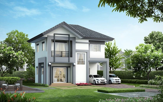 1. แบบบ้าน Pine - บ้านเดี่ยว 2 ชั้น พื้นที่ใช้สอย 148 ตร.ม. ขนาดพื้นที่เริ่มต้นที่ 50 ตร.วา ขึ้นไป 3 ห้องนอน 2 ห้องน้ำ จอดรถ 2 คัน