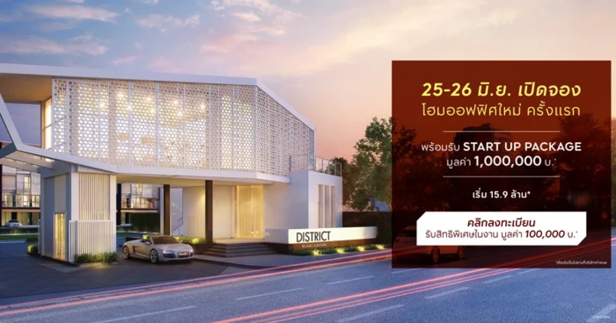 บริษัท เอพี (ไทยแลนด์) จำกัด (มหาชน) เตรียมเปิดตัวโฮมออฟฟิศรูปแบบใหม่ "ดิสทริค เอกมัย - รามอินทรา (DISTRICT Ekkamai - Ramintra)" โฮมออฟฟิศที่สรรสร้างอย่างลงตัว เพื่อมุมมองธุรกิจและการใช้ชีวิต บนทำเลใจกลางธุรกิจ เปิดจองครั้งแรก 25-26 มิถุนายน 2559 นี้ พร้อมรับ START UP PACKAGE มูลค่า 1,000,000 บาท พิเศษ! คลิก ลงทะเบียนรับสิทธิ์จองรอบ VIP ก่อนใคร! รับสิทธิพิเศษในงาน มูลค่า 100,000 บาท