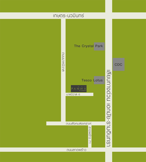ติดต่อโครงการได้ที่สำนักงานขาย หรือโทร. 02-691-7068-9, 089-662-9559, Email: panna@pannaliving.com