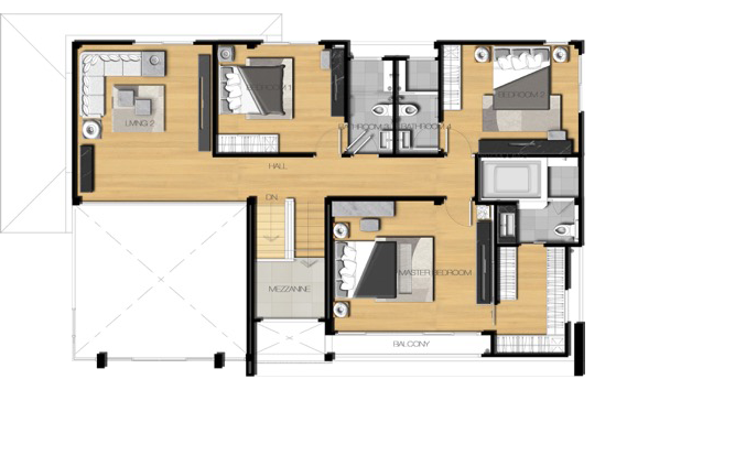 3. แบบบ้าน BEYOND - บ้านเดี่ยว 2 ชั้น พื้นที่ใช้สอย 359 ตร.ม. บนพื้นที่ 100 ตร.วา 4 ห้องนอน 5 ห้องน้ำ 3-4 ที่จอดรถ และอีกหนึ่งห้องนอนชั้นล่างสำหรับผู้สูงอายุ ครัวและพื้นที่ซักรีด, ลานซักล้าง, ห้องแม่บ้าน และ 2 ห้องนั่งเล่นขนาดใหญ่ ที่สามารถปรับเปลี่ยนฟังก์ชั่นได้ตามความต้องการของทุกคนในครอบครัว