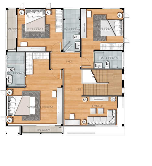 2. แบบบ้าน MANTRA - บ้านเดี่ยว 2 ชั้น พื้นที่ใช้สอย 271 ตร.ม. บนพื้นที่ 100 ตร.วา ขนาด 4 ห้องนอน 5 ห้องน้ำ 2-3 ที่จอดรถ พร้อมห้องนอนชั้นล่างสำหรับผู้สูงอายุ, ครัวและพื้นที่ซักรีด, ลานซักล้าง, ห้องแม่บ้าน และ 2 ห้องนั่งเล่นขนาดใหญ่ ที่สามารถปรับเปลี่ยนฟังก์ชันให้เป็น Mini Home Theatre หรือห้องออกกำลังกาย