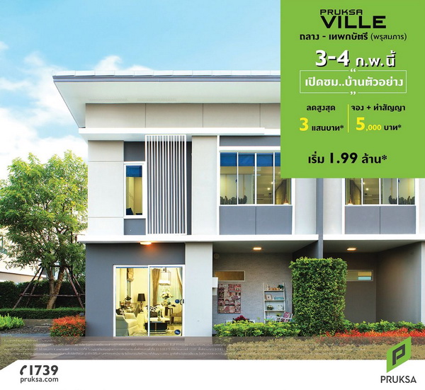 โปรโมชั่น: Pruksa Ville ถลาง-เทพกระษัตรี (พรุสมภาร) 3-4 กุมภาพันธ์ นี้ เปิดชมบ้านตัวอย่าง ลดสูงสุด 300,000 บาท* จอง+ทำสัญญา 5,000 บาท* เริ่ม 1.99 ล้านบาท*