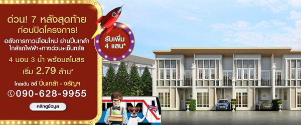 โกลเด้น ซิตี้ ปิ่นเกล้า-จรัญสนิทวงศ์ 7 หลังสุดท้าย! ก่อนปิดโครงการ!!! รับเพิ่ม 4 แสน*! อลังการทาวน์โฮมใหม่ ย่านปิ่นเกล้า ใกล้รถไฟฟ้า+ทางด่วน+เซ็นทรัล มาพร้อมฟังก์ชัน 4 ห้องนอน 3 ห้องน้ำ พร้อมสโมสร พิเศษ! ห้องพระ+ครัวไทย เริ่ม 2.79 ล้าน*