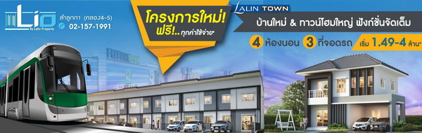 ลลิล ทาวน์ ไลโอ ลำลูกกา คลอง 4-5" โครงการใหม่!! ใจกลาง ลำลูกกา ตั้งอยู่บนทำเลแห่งอนาคต ใกล้ทางด่วนมาก.. 4 นาที ถึงรถไฟฟ้าสายสีเขียว พร้อมด้วยสวนส่วนกลางขนาดใหญ่ คลับเฮาส์หรู และสระว่ายน้ำสุดโมเดิร์น -บ้านใหม่หน้าสวนติดถนนเมน เริ่ม 2.8-4 ล้าน* -ทาวน์โฮมระดับพรีเมี่ยม 2 จอดรถส่วนตัว เริ่ม 1.49-2 ล้าน ลงทะเบียนวันนี้รับสิทธิ์พิเศษ ฟรี!! ทุกค่าใช้จ่ายวันโอน+แอร์*