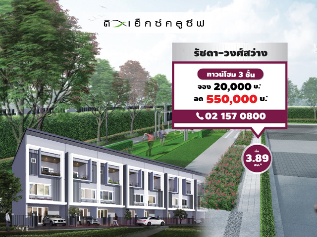 ดิเอ็กซ์คลูซีฟ มอบโปรแรงแซงงานมหกรรมฯ!! กับทาวน์โฮมคุณภาพดี บนสามทำเลใกล้รถไฟฟ้า