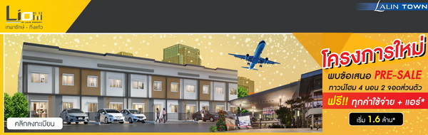 ลลิล ทาวน์ ไลโอ บลิสซ์ เทพารักษ์ - กิ่งแก้ว โครงการใหม่ พบข้อเสนอ PRE-SALE ทาวน์โฮม 4 นอน 2 จอดส่วนตัว ฟรี!! ทุกค่าใช้จ่าย + แอร์* เริ่ม 1.6 ล้าน* ทาวน์โฮมใหม่ ใหญ่สุดทุกมิติ 4 ห้องนอน 2 ที่จอดรถ พร้อมครัวไทย ใกล้ทางด่วน ใกล้เมกาบางนา