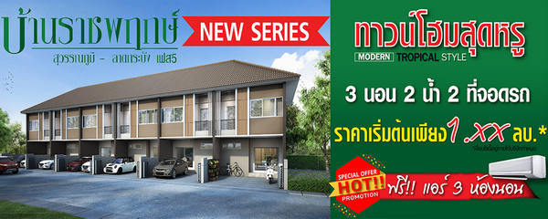 บ้านราชพฤกษ์ สุวรรณภูมิ - ลาดกระบัง เฟส 5 ทาวน์โฮมสุดหรู Modern Tropical Style 3 นอน 2 น้ำ 2 ที่จอดรถ ราคาเริ่มต้นเพียง 1.xx ล้านบาท Special Offer Hot Promotion ฟรี!! แอร์ 3 ห้องนอน