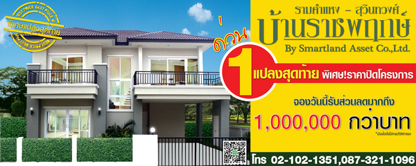 บ้านราชพฤกษ์ รามคำแหง - สุวินทวงศ์ ด่วน! 1 แปลงสุดท้าย พิเศษ! ราคาปิดโครงการ จองวันนี้รับส่วนลดมากถึง 1,000,000 กว่าบาท