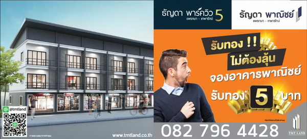 ธัญดา พาร์ควิว 5 แพรกษา - เทพารักษ์ รับทอง ไม่ต้องลุ้น จองอาคารพาณิชย์ รับทอง 5 บาท