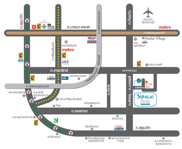 ศุภาลัย เบลล่า เทพารักษ์ Supalai Bella Theparak" บ้านเดี่ยวและบ้านรุ่นใหม่ดีไซน์ล่าสุด ออกแบบให้พื้นที่ทุกตารางเมตร ใช้ประโยชนได้อย่างเต็มที่ พร้อมให้ความเป็นส่วนตัวในการอยู่อาศัยเพียง 74 ครอบครัวเท่านั้น แวดล้อมด้วยสิ่งอำนวยความสะดวกครบครัน อาทิ บิ๊กซี บางพลี, Market Village สุวรรณภูมิ, โลตัส, แมคโคร, เมกาบางนา, อิเกีย, โรงพยาบาลบางพลี, และสนามบินสุวรรณภูมิ