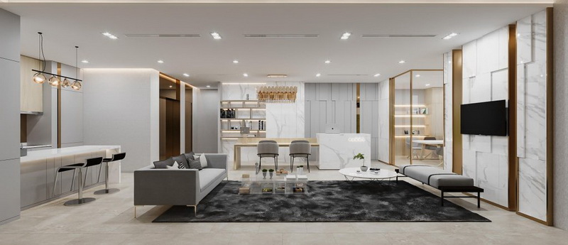 แบบบ้านเป็นโฮมออฟฟิศ 5 ชั้น หน้ากว้าง 12.5 เมตร ที่ดินมาตรฐาน 130.80 - 137.90 ตร.ว. พื้นที่ใช้สอย 679 ตร.ม. พื้นที่อเนกประสงค์ 4 ชั้น 1 ห้องนอน 5 ห้องน้ำ ที่จอดรถ 11 คัน ความสูงจากพื้นถึงฝ้าชั้น 1,4 สูง 2.80 เมตร / ชั้น 2,3,5 สูง 2.50 เมตร