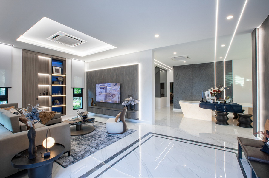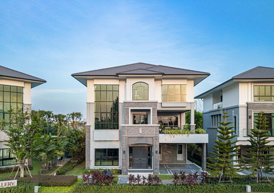 แบบบ้านศุภศรัณย์ บนพื้นที่ 380 ตร.ม. และ แบบบ้านศุภศิริ บนพื้นที่ 321 ตร.ม. มาพร้อมห้องนั่งเล่นชั้น 1 ออกแบบเพดานสูง (Double Volume) เอกลักษณ์ที่แตกต่างด้วย Facade ออกแบบตามคอนเซ็ปต์ Modern Metro