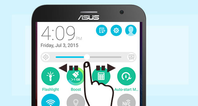 โดยสไลด์ขอบจอด้านบนลงมา 2 ครั้ง เลือกไอคอน Boost (บูสต์) ซึ่งโหมดนี้จะช่วยแก้ปัญหาเครื่องหน่วงเครื่องช้า และยังช่วยประหยัดแบตเตอรี่ให้คุณได้ในปุ่มเดียว
