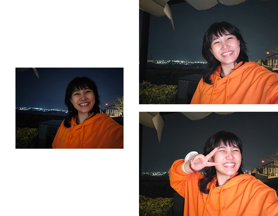 - โหมดกลางคืน (Night Mode) : ให้ผลลัพธ์ที่ดีไม่ต่างจากกล้องหลัง ในเรื่องของความคมชัด การปรับแสดง และสีสัน