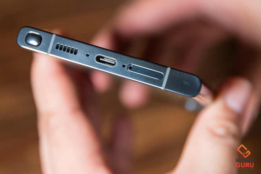 Samsung Galaxy S23 Ultra ขอบด้านข้างโค้งน้อยลง มีความเหลี่ยมมากขึ้นช่วยให้จับถือได้ถนัดมากกว่าเดิม มาพร้อมไมค์ 3 ตัว ด้านบน และด้านล่างอีก 2 ตัว ด้านล่างประกอบด้วย ช่องใส่ซิม, พอร์ท USB Type-C และลำโพง และแน่นอนครับว่ามาพร้อมปากกา S Pen ในตัว ส่วนด้านซ้ายจะเรียบๆ และด้านขวามีปุ่มปรับระดับเสียง และปุ่ม Power