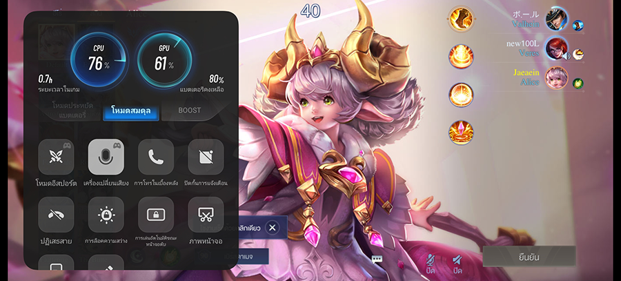 สำหรับประสิทธิภาพทางด้านการเล่นเกมบน vivo Y36 ก็จัดว่าให้ประสบการณ์การเล่นเกมที่ลื่นไหลดีค่ะ ทัชหน้าจอลื่นติดนิ้ว และจากการทดสอบด้วยเกม RoV สามารถปรับค่าภาพ HD ได้ในระดับสูงมาก ปรับการแสดงผลได้ในระดับสูง และสามารถเปิด FPS ในระดับสูงได้ด้วยเช่นกัน เฟรมเรทวิ่งอยู่ที่ 58FPS - 60FPS ตลอดเกม ซึ่งในช่วงเปิดสุดนี้ก็มีทัชหลุดและหน่วงอยู่บ้างเล็กน้อย แต่สามารถเล่นได้เรื่อย ๆ ค่ะ โดย vivo Y36 ยังมาพร้อมกับฟีเจอร์ Ultra Game Mode และ Multi-Turbo ที่สามารถปรับปรุงประสิทธิภาพการเล่นเกมให้ลื่นไหลยิ่งขึ้นอีกด้วย