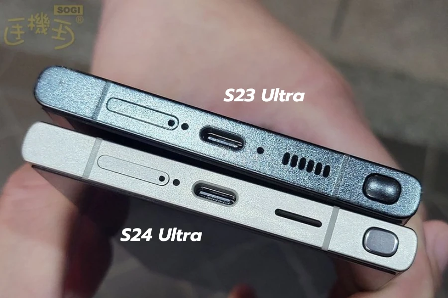 เป็นภาพหลุดเปรียบเทียบตัวเครื่องของรุ่น Galaxy S23 Ultra กับ Galaxy S24 Ultra โดยจะเห็นว่าตัวเครื่องของ Galaxy S24 Ultra จะมีทรงเหลี่ยมมากขึ้น และผสมวัสดุไทเทเนียม