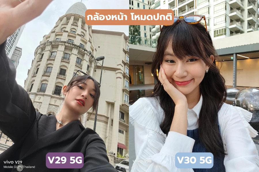 ด้านกล้องของทั้ง 2 รุ่น ถือกว่าเป็นกล้องที่ดีมากเลยครับในสมาร์ตโฟนช่วงราคาหมื่นกลางๆ ด้วยสไตล์กล้องที่มาแนวบิ้วตี้ ทำให้เราสามารถถ่ายจบได้ที่หลังกล้อง บริเวณหน้าจะปรับให้เนียน และเมื่อเราถ่ายย้อนแสงก็จะช่วยเพิ่มสว่างและปรับไม่ให้ Over เกินไปครับ แต่ถ้าให้เลือกก็คงต้องเป็นรุ่น vivo V30 5G เพราะอัปเกรดกล้องมาที่ความละเอียด 50MP ทุกเลนส์เลย ทำให้เก็บรายยละเอียดได้คมชัดสุดๆ