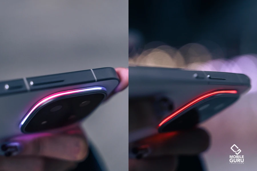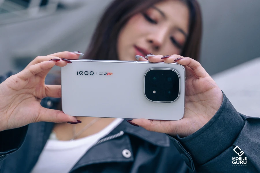 ด้านดีไซน์ตัวเครื่องของ iQOO 15 ที่ได้มาลองเป็นสีขาว Legends ที่ได้แรงลันดาลใจสีของรถแข่ง ให้ลุคเกมมิ่ง เท่แบบคลีนๆ ฝาหลังวัสดุแบบกระจกผิวด้าน ทำให้ไม่เกิดรอยนิ้วมือ มี Logo iQOO และ Monster Inside ส่วนบริเวณโมดูลกล้องมีลักษณะโค้งมน และซ่อนไฟแบบไดนามิก Monster Halo ไว้ด้านหลังโมดูลกล้อง ซึ่งจะเห็นได้ชัดหากมองจากด้านข้าง เป็นไฟ RGB ที่เสริมความเป็นเกมมิ่งได้อย่างลงตัว เหมาะกับผู้ที่ไม่อยากให้ไฟ RGB โดดเด่นเกินไป ส่วนขอบตัวเครื่องเป็นวัสดุอลูมิเนียมอัลลอยด์ มีความแข็งแรง ขอบมุมทั้ง 4 มุม มีลักษณะโค้งมน ถือเมื่อเล่นเกมได้ดี
