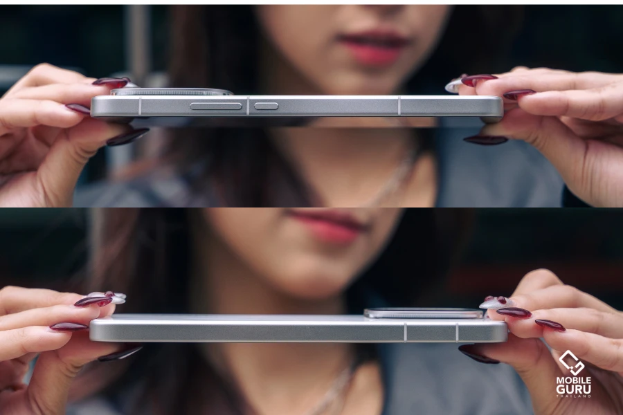 - กล้องหลัง: เซนเซอร์ Sony IMX921 1/1.56" ความละเอียด 50MP f/1.88 + Ultrawide 50MP f/2.05 + Telephoto (3x) Sony IMX882 1/1.92" ความละเอียด 50MP