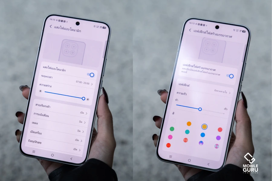 - แสงไฟแบบไดนามิกสามารถปรับตามช่วงเวลาของวันได้
