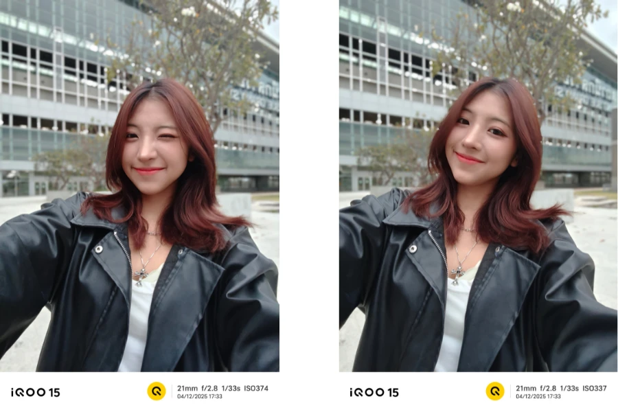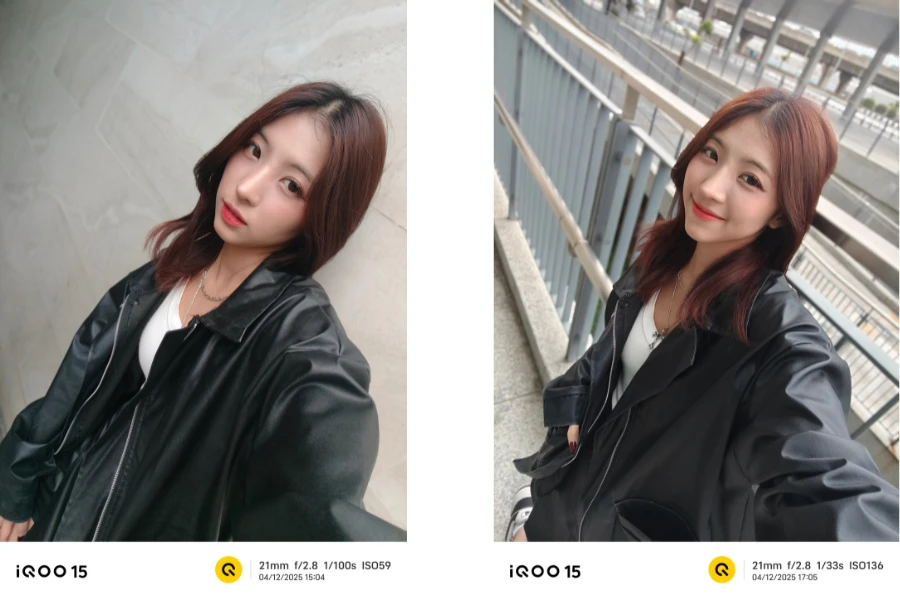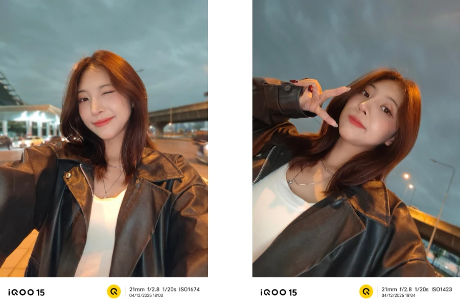 ด้วยหน้าจอที่สว่างถึง 2600nits สามารถใช้เพิ่มแสงในการถ่ายภาพเซลฟี่ด้วยกล้องของ iQOO 15 ได้ดี เมื่อถ่ายในพื้นที่แสงหน่อย ช่วยเติมแสงให้กับใบหน้าของเราให้สดใส