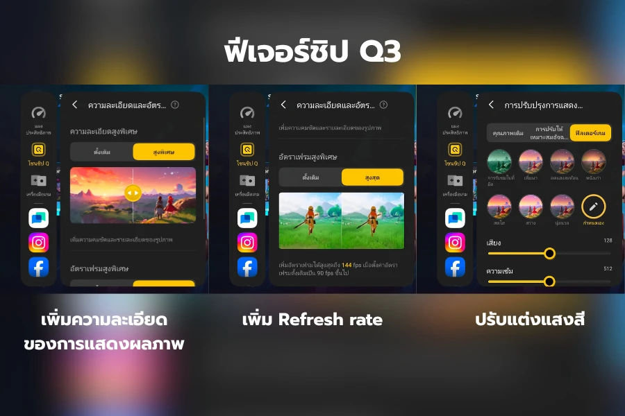 - ชิป Q3: เพิ่มรายละเอียดภาพ + เพิ่ม Refresh rate