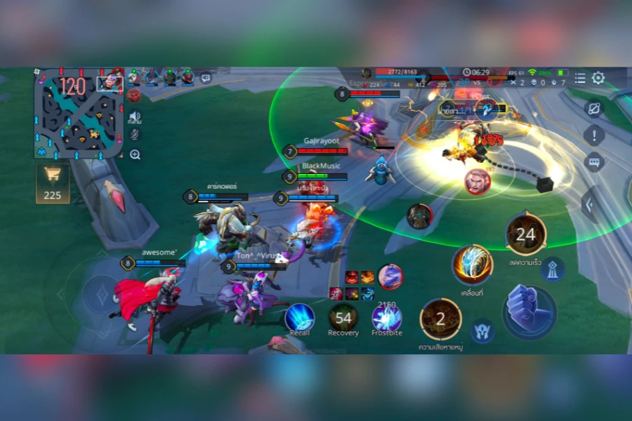 - เกม LOL Wild Rift ความละเอียดสูง 2K 144fps ใช้เวลาประมาณ 30 นาที แบตเตอรี่ลดไปประมาณ 7%
