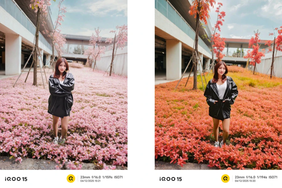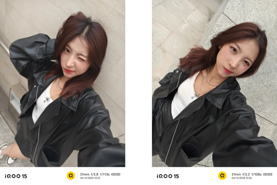 ด้านกล้องหน้าของ iQOO 15 มีความละเอียด 32MP f/2.2 จากการใช้งานให้มุมภาพที่กว้าง FOV 90 องศา สามารถใช้ถ่ายเซลฟี่ภาพกลุ่มดี โทนภาพเป็นสไตล์บิ้วตี้ สดใส สามารถปรับโทนผิวกระจ่างใสได้ ซึ่งจากที่ลองถ่ายได้โทนผิวไปทางอมชมพูเล็กน้อย ปรับผิวหน้าได้สวยเนียน สามารถถ่ายแล้วโพสต์ลงโซเชียลได้เลย