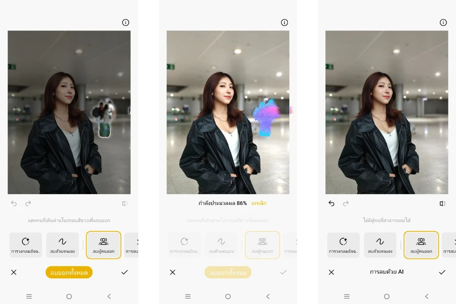 เป็นฟีเจอร์ AI ที่สามารถลบคนออกจากพื้นหลังของภาพถ่ายเราได้ ซึ่งสามารถลบคนออกได้แล้วเติมพื้นหลังได้เนียนตา