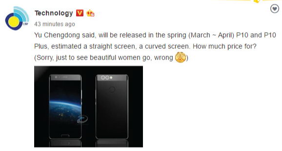 โดยล่าสุดมีรายงานว่า CEO ของ Huawei คุณ Yu Chengdong ได้ออกมาเปิดเผยเองเลยว่า Huawei P10 และ P10 Plus จะเปิดตัวในเดือนมีนาคม หรือเดือนเมษายน 2017 และจะมาพร้อมหน้าจอปกติสำหรับ P10 และหน้าจอโค้งสำหรับ P10 Plus แต่สำหรับเรื่องราคายังอุบเอาใว้ก่อนนะครับ