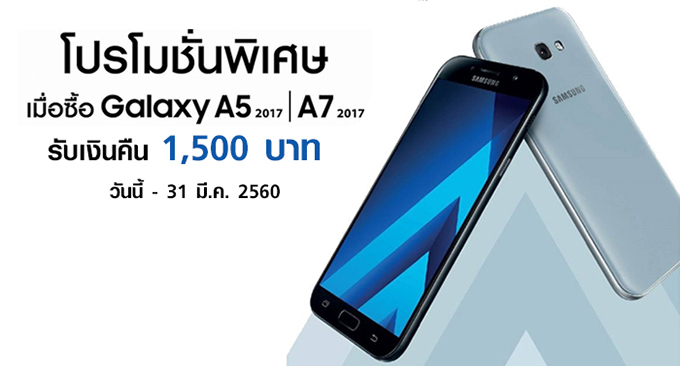 โปรโมชั่นพิเศษ! เพียงซื้อ Samsung Galaxy A รุ่นปี 2017 รับเงินคืน 1,500 บาท