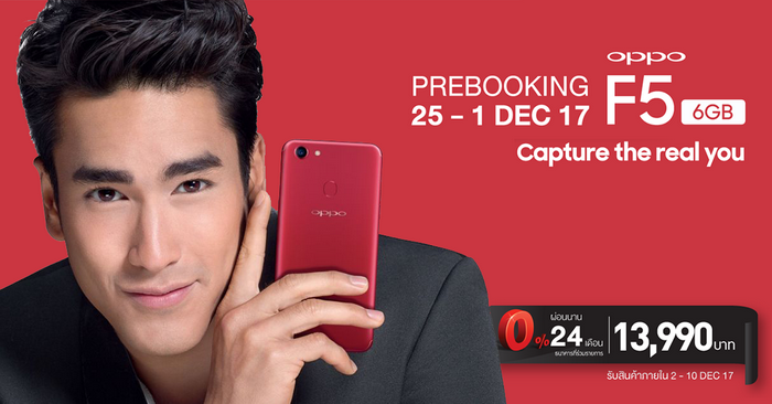 OPPO F5 RAM 6GB เปิดจอง 25 พ.ค.นี้ ในราคาเพียง 13,990 บาท พร้อมผ่อน 0% นาน 24 เดือน