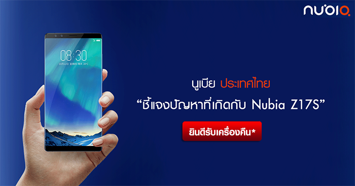 อัพเดต* นูเบีย ประเทศไทย ชี้แจงปัญหา Nubia Z17S พร้อมยินดีรับคืนเครื่อง