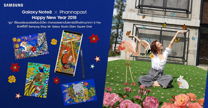 พร้อมรับฟรี! โปสการ์ดอวยพรปีใหม่ดีไซน์พิเศษจากดีไซเนอร์แบรนด์แฟชั่นระดับโลก "ยูน-ปัณพัท เตชเมธากุล" ผ่านปากกา "S Pen" ตามแนวคิด "Galaxy in the Bush" ที่ได้รับแรงบันดาลใจจากการผสมผสานศิลปะตะวันตก และตะวันออก