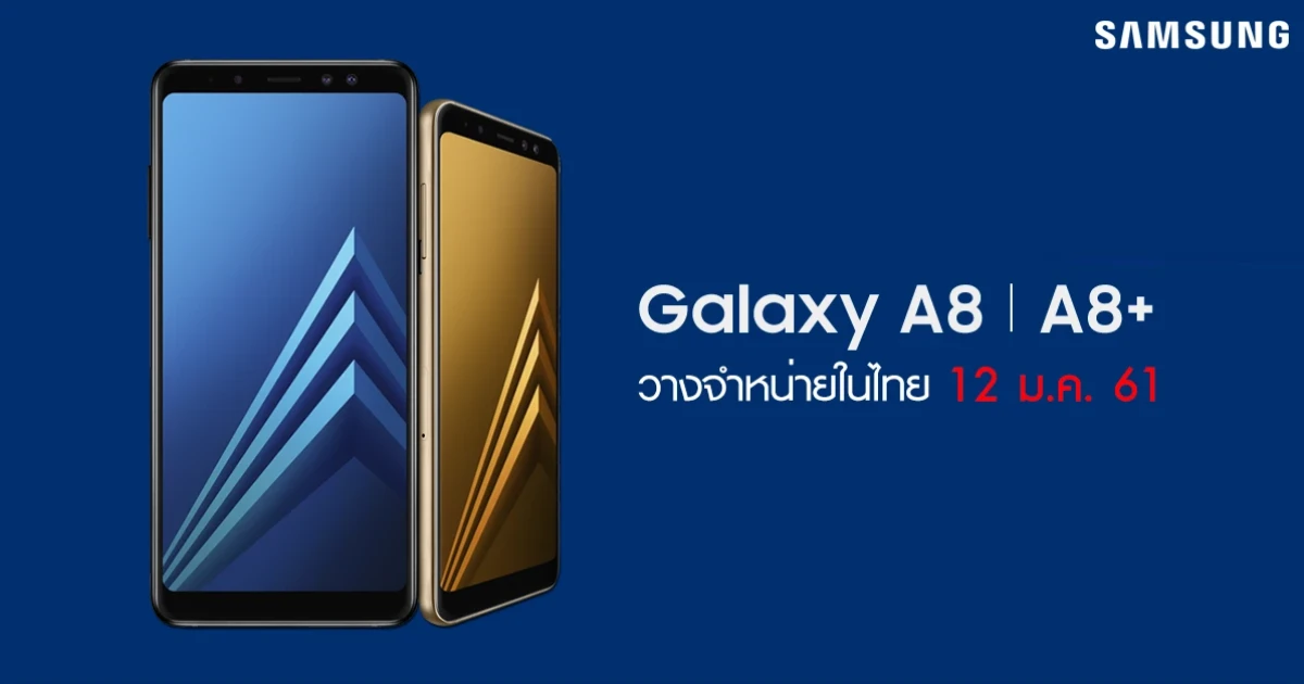 Samsung Galaxy A8 (2018) และ Samsung Galaxy A8+ (2018) สมาร์ทโฟนหน้าจอไร้ขอบ กล้องหน้าคู่ ที่มาพร้อมด้วยดีไซน์สุดพรีเมี่ยมระดับเรือธง จาก ซัมซุง เตรียมวางจำหน่ายในประเทศไทยอย่างเป็นทางการ วันที่ 12 มกราคม 2561 ที่จะถึงนี้ เรียกได้ว่าไม่ปล่อยให้บรรดาแฟนๆ ต้องรอนาน ใครที่กำลังมองหาสมาร์ทโฟนรุ่นใหม่หรือกำลังเล็งสมาร์ทโฟนรุ่นนี้เอาไว้เพื่อต้อนรับปีใหม่ก็อดใจรอกันอีกนิดครับ