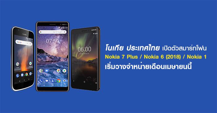 โนเกีย ประเทศไทย เปิดตัว Nokia 7 Plus, Nokia 6 (2018) และ Nokia 1 พร้อมวางจำหน่าย เม.ย. นี้