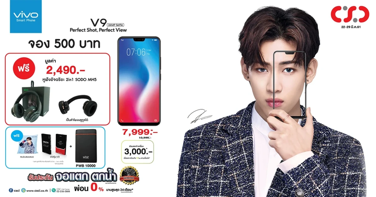 สั่งจอง Vivo V9 กับ CSC วันนี้ ผ่อนสบาย 0% นาน 24 เดือน พร้อมลุ้นรับฟรีอีก 1 เครื่อง!