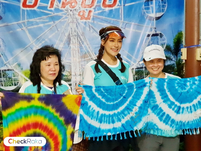 และยังร่วมกันทำผ้ามัดย้อมตามสไตล์ของตนเอง โดยมีการประมูลผ้ามัดย้อมฝีมือ คิมเบอร์ลี่ จำนวน 3 ผืน รวมเป็นเงิน 50,000 บาท รายได้ทั้งหมดนำไปทำบุญมอบให้วัดบางน้ำผึ้งนอก