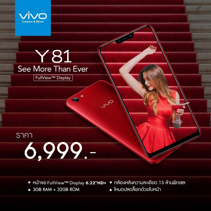 Vivo Y81 สมาร์ทโฟนราคาไม่แพง  กับสโลแกน See More Than Ever