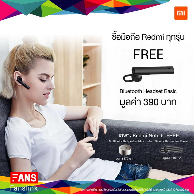 พิเศษสำหรับลูกค้าที่ซื้อมือถือในรุ่น Xiaomi Redmi ทุกรุ่น รับฟรีทันที กับ Mi Bluetooth Headphone Basic มูลค่า 390 บาท และสินค้าอีโคซิสเท็มทุกรายการลดราคา 5 % ยังไม่หมดเท่านี้กับกิจกรรม หน้าร้าน