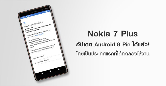 Nokia 7 Plus อัปเดต Android 9 Pie ได้แล้ว เครื่องศูนย์ไทยทดลองเป็นเจ้าแรก