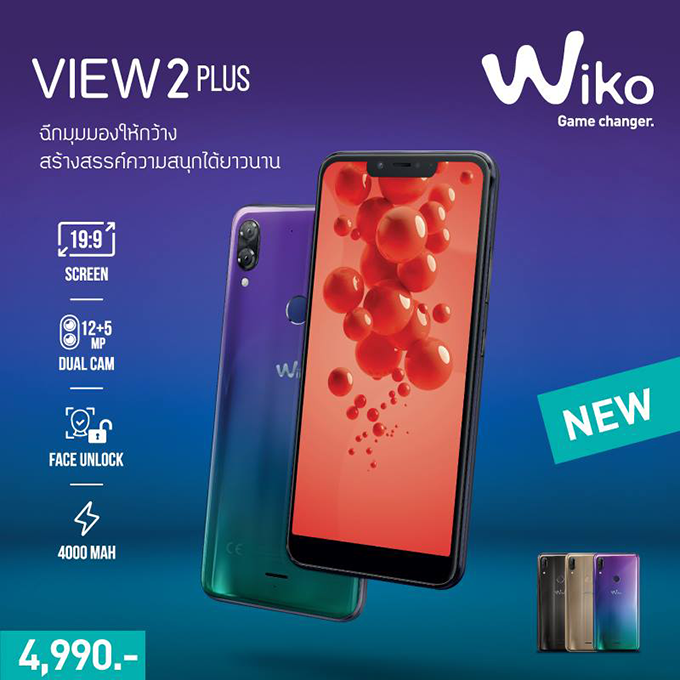 Wiko View2 Plus มีให้เลือก 3 สี คือ สีดำแอนทราไซต์ (Anthracite), สีทอง (Gold) และสีลาเวนเดอร์ บลีน (Lavender Bleen) ในราคา 4,990 บาท