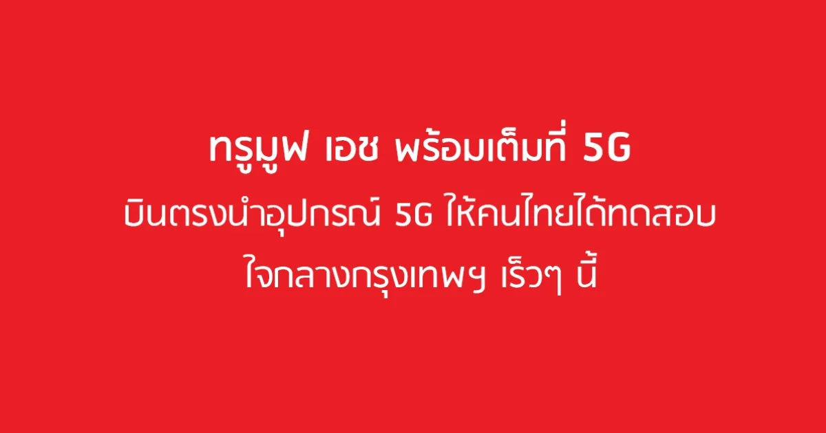 ทรูมูฟ เอช พร้อมเต็มที่ 5G! บินตรงนำอุปกรณ์ 5G ให้คนไทยได้ทดสอบใจกลางกรุงเทพฯ เร็วๆ นี้